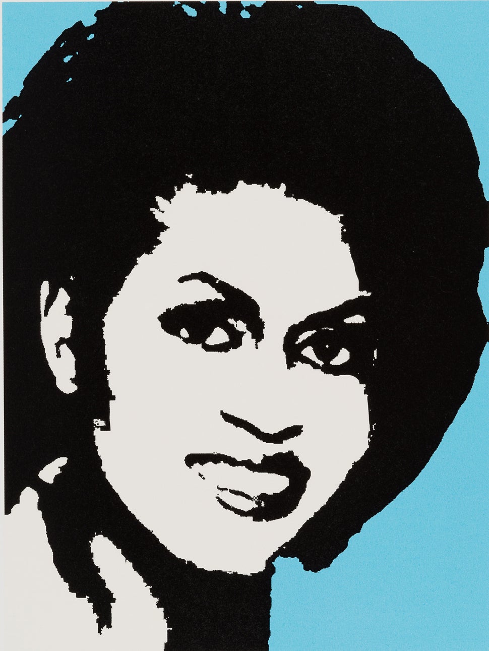 Her 2008 screen print “Michelle O” features a graphic image of FLOTUS’ face in black and white. In its simplicity and visceral power, the print captures not just the image of a person, but the spirit of an icon.